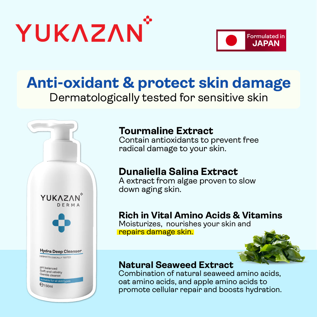 Yukazan Derma Hydra Deep Cleanser 150ml pH Balanced Face Wash Cleanser